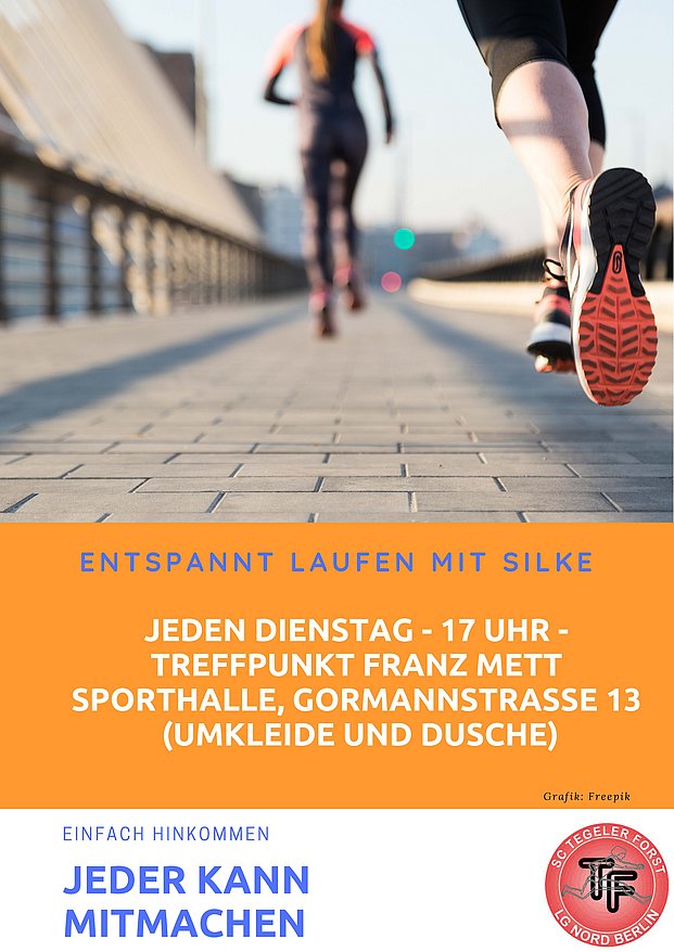 Der schon im Januar angefangene Lauftreff hat einen neuen Startpunkt. Ab sofort treffen wir uns immer dienstags, 17 Uhr auf der Sportanlage Mitte, Gormannstraße 13 (Nähe Rosenthaler Platz). Wir laufen von dort in Richtung Spree/Tiergarten in gemütlichem Tempo. Jeder ist willkommen, wir passen das Tempo an. Wir haben hier eine Umkleidekabine und Duschen zur Verfügung. Wir laufen etwa eine Stunde. Man muss sich nicht anmelden, man kann einfach kommen.
