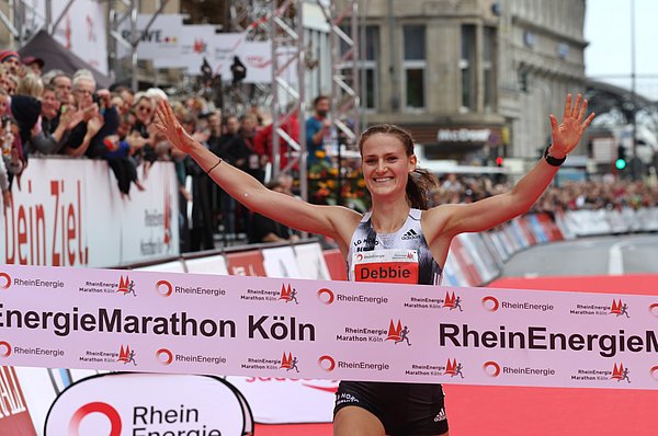 Beim 22. Rhein Energie Marathon in Köln hat Debbie Schöneborn (94) ein hervorragendes Marathon-Debüt abgegeben.