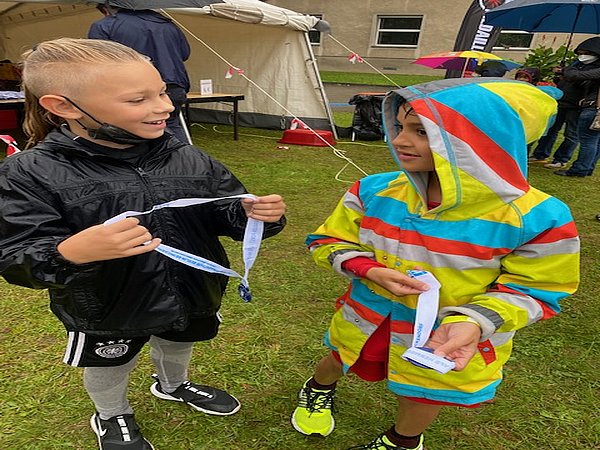 Klitschnass, aber stolz nahmen sie alle ihre Medaillen entgegen.
