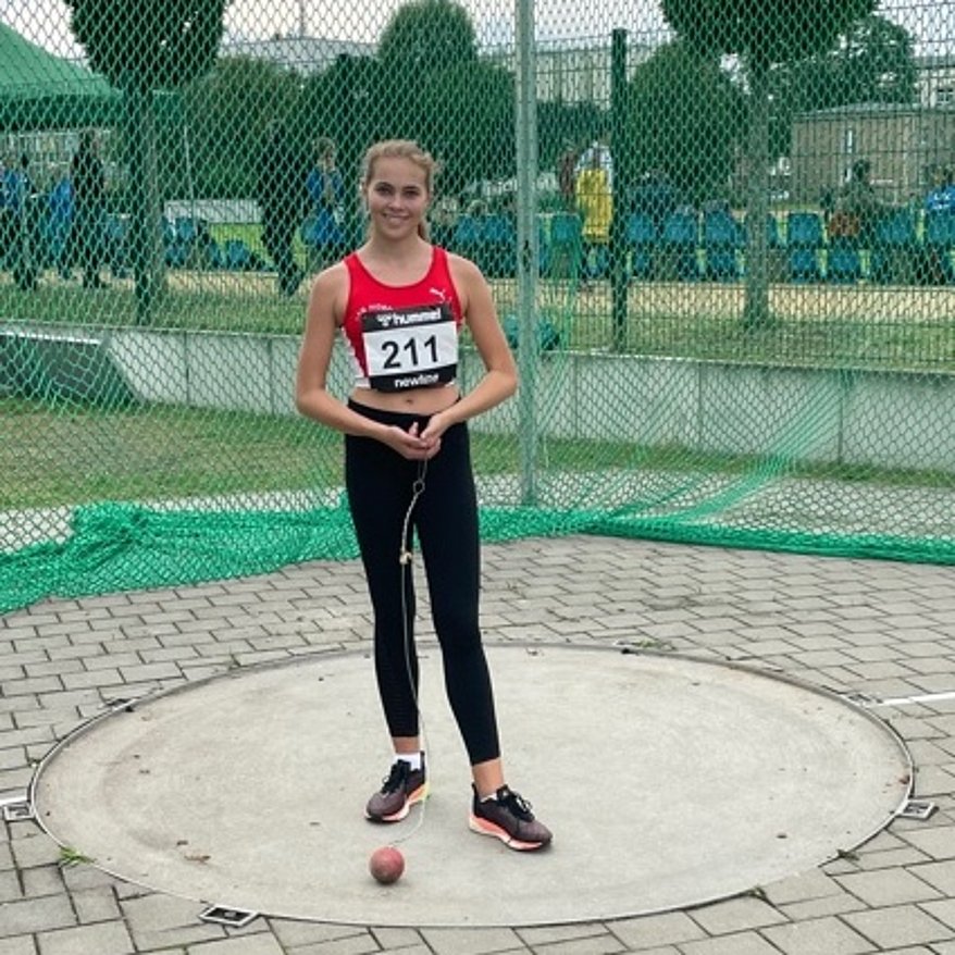 Mit Fabienne Schäfer zeichnet sich ein Wurftalent mit Schwerpunkt im Hammerwurf ab. Mit ansprechenden 44,50 Metern siegte sie bei der W13, wie im Vorjahr bei der W12. Trainiert von Vanessa Pfeifer, diesmal betreut vom DLV Bundesnachwuchstrainer Ron Hüttcher, zeigte Fabienne schon eine gute Technik im Wurfkreis. Auch in einer anderen Wurfdisziplin konnte sich Fabienne eine weitere Medaille erkämpfen. Im Diskuswurf wurde sie mit 21,11 Metern Zweite und im Kugelstoßen errang sie mit 7,28 Metern den fünften Platz.