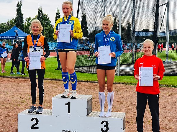 Lea Dieckmann belegte im Hochsprung den 7. Platz, wobei sie die 1,32 Metern mit „wippender Latte“ diese Höhe überwinden konnte. Im Wurfbereich zeigte Liv Stresow mit 18,33 Metern beim Diskuswurf und einen 4. Platz durchaus Potentiale; im Speerwurf wurde sie Zehnte mit 18,69 Metern.