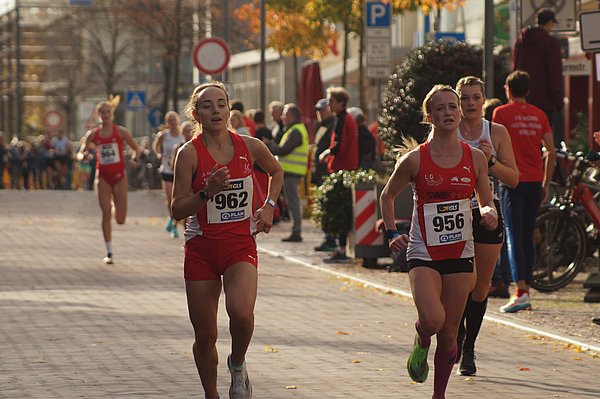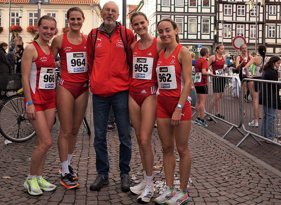 Bei den Frauen wollten Rabea Schöneborn, Luisa Boschan, Deborah Schöneborn und Carmen Schultze-Berndt in der Mannschaftswertung um die Medaillen laufen. Dank der geschlossenen Mannschaftsleistung gelang dieses Vorhaben nahezu perfekt. In neuer LG NORD Rekordzeit von 1:42:00 Stunden freuten sich im Ziel Rabea, Luisa und Debbie über die Silbermedaille. Mehr war nicht möglich, da Rabea nach ihrem Erfolg beim Berlin Marathon erst wieder das Training aufgenommen hatte und gleiches gilt für Debbie nach ihrer Verletzungspause. Rabea zeigte ein unter diesen Umständen starkes Rennen und wurde in guten 33:40 min. Sechste. Glänzend aufgelegt war Luisa als 13. in starken 34:08 min.. Ihre Bestzeit verfehlte sie knapp. Den Trainingsrückstand merkte man Debbie an, aber für die Mannschaft kämpfte sie vorbildlich und wurde in 34:13 min. 15. Im Ziel strahlte Carmen über eine neue persönliche Bestzeit von 35:44 min. und Platz 39 im Feld der 169 Läuferinnen.
