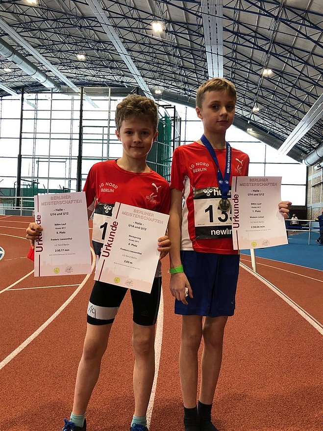 Bei den Zehn- und Elfjährigen gab es aus unserer Sicht mehrere erfreuliche Resultate, wobei unser Nachwuchs insbesondere bei den 800m-Läufen überzeugen konnte. Bei den M11 erlief sich Maksim Lützel den ersten Platz. Bei seinem Zeitlauf wurde, aufgrund defekter Zeiterfassung, nach bereits gelaufenen 400 Metern das Rennen abgebrochen, aber schon nach nur kurzer Pause wieder neu gestartet; gegenüber den Jungen aus den beiden anderen Zeitlaufen sicher eine klare Benachteiligung, doch Maksim konnte sich mit seiner Zeit von 2:38,04min trotzdem durchsetzen. Er verteidigte damit seinen Meistertitel aus der Freiluftsaison auch in der Halle. Weiterhin erreichte Frederic Loewenthal mit neuer persönlicher Bestzeit von 2:50,17min einen guten achten Platz.