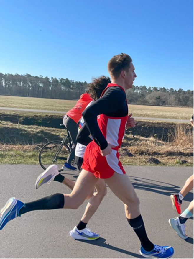 Bei böigen Windbedingungen und auf einer neuen Strecke konnte Dan Bürger überzeugen. Dan begann den Lauf über 10 km couragiert und hatte bei die 5 km eine Zwischenzeit von 15:11min. Auf der zweiten Streckenhälfte störte der böige Wind, die 8 U-Turns und er lief ohne Gruppe. Dennoch war Dan im Ziel mit seiner Zeit von 30:55min zufrieden. Seine Bestzeit aus dem letzten Jahr verfehlte er nur um 6 Sekunden.