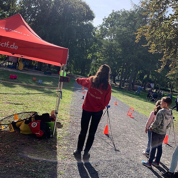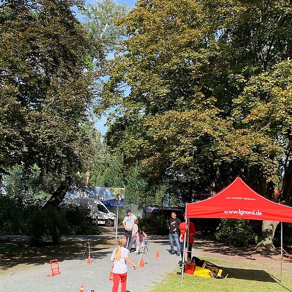 Am Freitag, den 23.09 waren wir als Vereinsinitiative wieder auf einem Familiensportfest für geflüchtete Menschen im Kienhorstpark. Wiedereinmal hat es uns riesen Spaß bereitet, die fröhlichen Gesichter der Kinder zu sehen, nachdem sie unseren Parcours geschafft hatten oder die Lichtschranke in einer neuen Bestzeit durchrannt hatten.