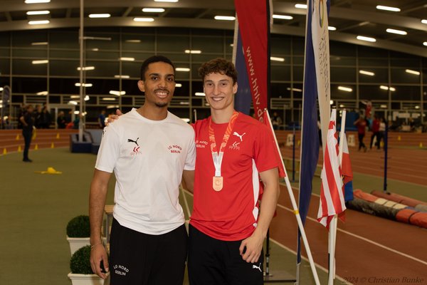 Der Abschluss des Tages gehörte den 400m-Athleten. Tom-Luca Gwizdek, der bereits seinen vierten Lauf über diese Strecke in der Halle bestritt, kam in der U20 nach 54,95s ins Ziel. „Nach den vielen Wettkämpfen ist das eine solide Zeit”, so sein Kommentar. Joseph Mouaha, der nach einer Verletzung seinen ersten 400m-Lauf des Winters lief, kam bei den Männern in einer guten Zeit von 50,05s ins Ziel. Die dritte Medaille des Tages holte Alexander Hanke. Mit Bronze in einer Zeit von 49,05s machte er den Sweep für die LG NORD komplett. „Ich bin echt happy, dass ich so gut mit der Trainingsumstellung zurechtkomme, auch wenn ich es noch nicht perfekt auf die Bahn bringen konnte“, so Alex nach seinem Bronze-Lauf. Für einen kleinen Schockmoment sorgte Karolina Pahlitzsch, die zusammen mit ihrer Teamkollegin Charlotte Wolff über die 400m startete. Als sie nach einer guten Zeit von 55,20s als 3. ins Ziel kam, war ihre Hand blutüberströmt. Glücklicherweise hatte sie sich bloß am Startblock geschnitten und konnte ihre Wunde schnell versorgen. Mit ihrem Bronze-Rennen war sie zufrieden: „Die ersten 200m waren gut, darauf lässt sich aufbauen.” Charlotte Wolff freute sich über ihre Zeit von 57,14s. Jedoch bemängelte sie nach dem Lauf, sie hätte beim Bahnwechsel früher reinlaufen müssen, um die eine oder andere Konkurrentin hinter sich lassen zu können.