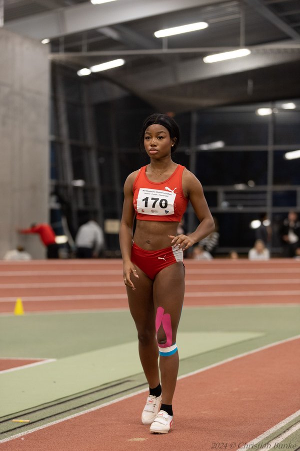 Ebenfalls am Samstag gingen die Sprinter über die 60m an den Start. Mit einer Zeit von 7,44s lief Vincent Schmidt zwar zu einer neuen Saisonbestleistung, doch war er trotzdem nicht ganz zufrieden. Auch Henry Nsakala Moya, der mit einer Zeit von 7,41s knapp den Zwischenlauf verpasste, hatte sich etwas mehr erhofft. Eine Mitschuld trug offenbar der Starter. „Er hat viel zu lange in der ,Fertig!‘-Position gewartet”, waren sich die beiden U18-Athleten einig. Marvin Brito Miguel qualifizierte sich bei den Männern mit einer Zeit von 7,17s für den Zwischenlauf, in dem er in 7,21s durchs Ziel ging. „Es war meine erste Norddeutsche Meisterschaft, und ich bin froh, dabei gewesen zu sein”, sagte der 22-jährige, der erst vor knapp einem Jahr mit der Leichtathletik begonnen hat. Auch Grace Monono durfte nach ihrem starken Vorlauf von 8,04s ein zweites Mal an den Start und lief noch eine Zeit von 8,12s. Später zeigte sich ihre Topform noch deutlicher: Mit einer neuen Bestweite von 12,47m holte sie im Dreisprung der U20 Gold. Auch Trainer Byron Casfor freute sich über das Ergebnis seiner Athletin: „Dieser Wettkampf war ein guter Test für die Deutschen Meisterschaften in drei Wochen. Vier der Top5-Dreispringerinnen waren da”, erklärt er. Diesen Test bestand Grace nicht nur wegen ihrer Spitzenweite mit Bravour: Gleich dreimal übertraf sie trotz Knieverletzung ihre bisherige Hallenbestleistung. Eine weitere Athletin Byrons konnte überzeugen: Julieta Gallego Gamez im Weitsprung der Frauen. Dabei bewies sie starke Nerven, denn bis zum 5. Versuch lag sie auf Platz 4. Doch im letzten Sprung passte alles, und sie konnte mit einer Weite von 5,79m auf den Silberrang vorrücken. „Das war ein guter Saisonabschluss”, lobte Byron. Für Julieta und die meisten anderen Athletinnen und Athleten des LG NORD-Teams bilden die Norddeutschen Meisterschaften den letzten Hallenwettkampf einer langen Wintersaison.