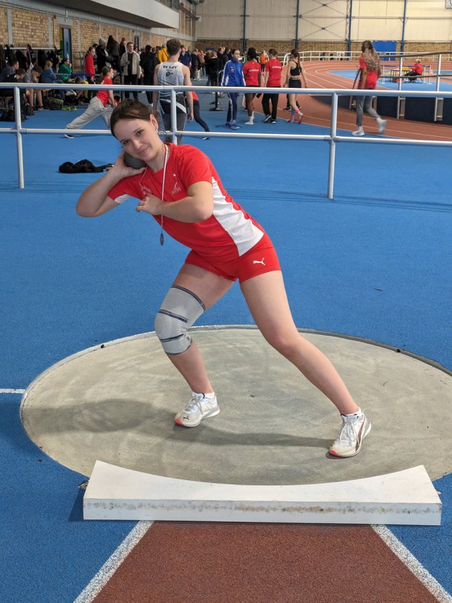 Diese Bronzemedaille sicherte sich wiederum Sarah Hinze im Kugelstoßen der Frauen, wo sie die 4kg-Kugel 7,78m weit stieß. Über 60m der U20 testete sie auch ihre Grundschnelligkeit und kam mit 9,24s als Vierte ins Ziel.