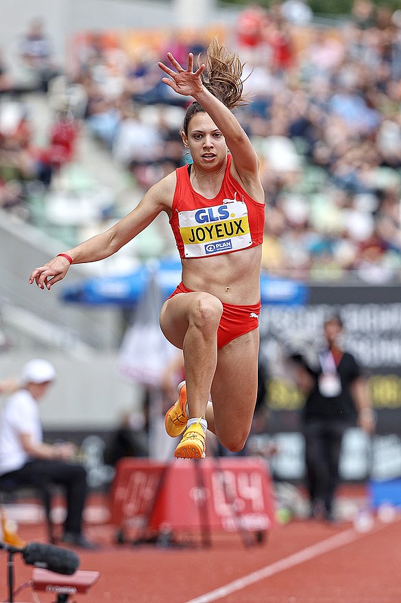 Im 4. Versuch packte „Caro“ dann den ersten „richtigen Sprung“ aus und landete bei 13,80m. Doch Kira Wittmann (Hannover 96) konterte in diesem Durchgang mit 13,89m, genauso wie Jessie Maduka (Cologne Athletics), die ebenfalls diese Weite sprang. Sarah-Michelle fiel damit auf den vierten Platz zurück. Der 5. Versuch brachte dann für Joyeux den wettkampfmäßigen Durchbruch. Nach Hop, Step und Jump landete sie bei überzeugenden 14,24m und übernahm die Führung im Klassement. Zwar sprang Kira Wittmann im letzten Versuch mit 13,97m noch eine neue persönliche Bestleistung, konnte aber Caro nicht mehr auf den 1. Platz gefährden. Auch Sarah-Michelle steigerte sich auf 13,85m, einen Zentimeter unter ihrer bisherigen Bestleistung, verfehlte damit die Bronzemedaille aber um fünf Zentimeter.