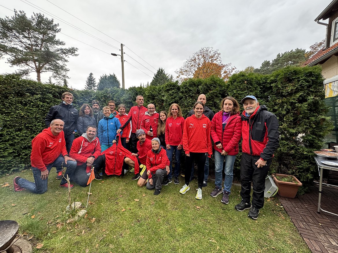 Diese Liste ließe sich noch lange fortsetzen – und Jörg, unser langjähriger Leiter des Ultrateams, hätte seine Freude am lebendigen Team gehabt. Leider ist er viel zu früh, im Januar 2021, von uns gegangen. Am 11. Oktober wäre Jörg 60 Jahre alt geworden. Aus diesem Anlass trafen sich 17 Teammitglieder bei den herzlichen Gastgebern Joanna und Dominik Pick. Dominik hatte – wie schon in den Jahren zuvor – ein „Kleeblatt“ aus vier Runden ausgearbeitet, sodass jede*r, der wollte, bis zu 60 Kilometer laufen konnte. Beim anschließenden geselligen Ausklang im Garten war der besondere Teamgeist unseres Ultrateams deutlich zu spüren – ein Moment, der Jörgs Spirit auf wunderbare Weise lebendig hielt.