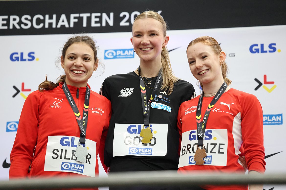 Unsere Caroline Joyeux und Kira Wittmann (Hannover 96), beide mit 13,94m als Saisonbestleistungen an den Start gegangen, kämpften letztendlich um Gold und Silber. Wittmann legte zunächst 13,76m vor, Joyeux blieb mit zunächst 13,59m dahinter. Im 4. Versuch schob sich Caroline mit 13,84m an die Pool-Position, wurde aber von Kira im 5. Versuch mit 13,94m ausgekontert. Gold ging damit an die Athletin aus Hannover, Silber gewann aber Caroline. Die 14m-Marke bleibt beiden als Ziel für die Freiluftsaison.