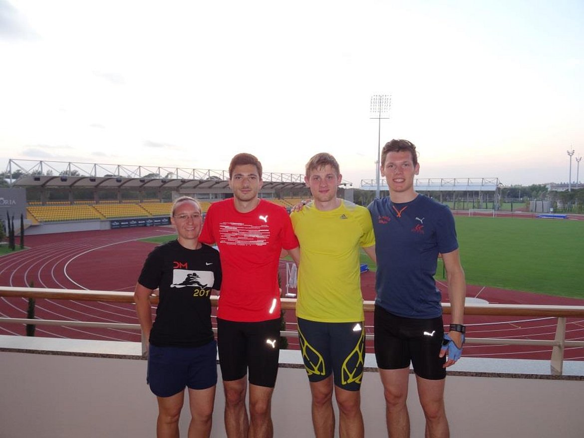 Unsere vier Topathleten Stephan Hartmann, Marc Koch, Raùl Spank und Marcel Matthäs weilten mit unserer hauptamtlichen Trainerin Nadine Großkopf in der ersten Maiwoche im türkischen Belek in der neu entstandenen Hotelanlage der Gloria Sports Arena. In Zusammenarbeit mit dem Sprungteam des Deutschen Leichtathletik-Verbandes konnte unter perfekten Bedingungen (über Kältekammer, Tartantreppenanlage bis hin zum supertollem Kraftraum war alles vorhanden) der letzte Feinschliff für die anstehende Sommersaison geholt werden. Mit einem starken Kompetenzteam aus Biomechanikern, Physiotherapeuten, Psychologen und Trainerteam wurden Sprünge und Läufe analysiert und ausgewertet. Insgesamt war es ein sehr gelungenes Trainingslager in einer supertollen Anlage mit besten Bedingungen.