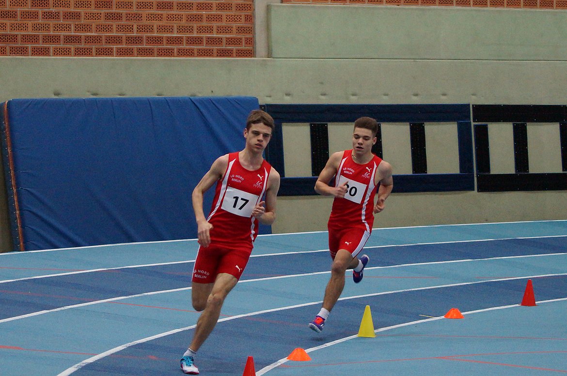Den einzigen norddeutschen Titel an diesem Wochenende konnte Thilo Brill (97) in der U20 auf seiner Spezialstrecke über 1500m beisteuern. Von Anfang bestimmte Thilo die Renngestaltung von der Spitze weg und enteilte mit Trainingskamerad Manuel Walicki (98) zunächst dem Feld. Ab 1200m drehte Thilo die letzten anderthalb Runden dann alleine und gewann ungefährdet in 3:58,64min. Manuel musste noch etwas Fersengeld geben und wurde am Ende in 4:05,32min noch auf den Bronzerang verdrängt.
