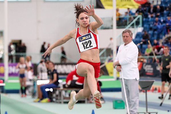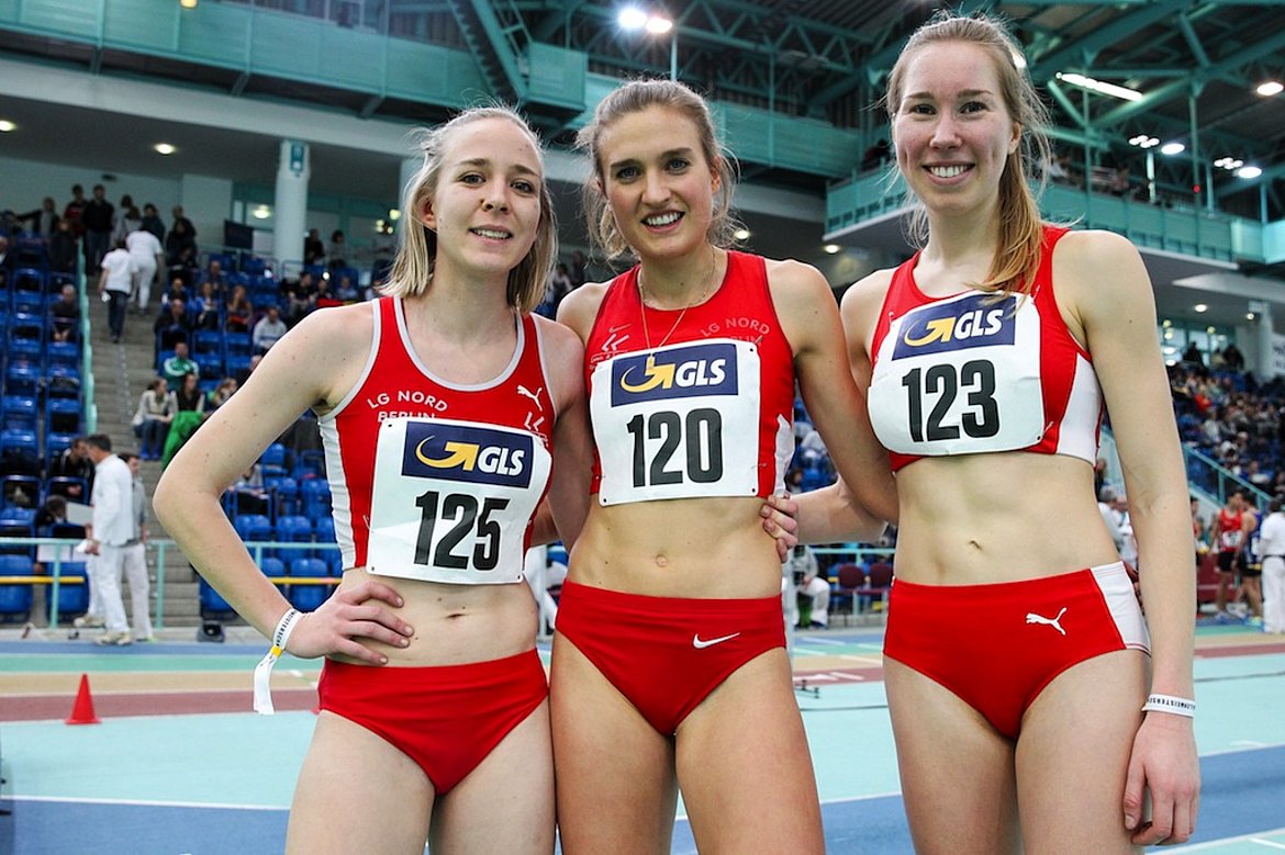 Traditionell werden bei den Jugendhallenmeisterschaften die Langstaffeln der Männer und Frauen durchgeführt. So trat auch eine Frauenstaffel der LG NORD über 3x800m in Halle an. Isabella Kuhn als Startläuferin blieb nah an der führenden Staffel aus Leverkusen dran und übergab als zweite an Cati Granz, die zwischenzeitlich sogar die Führung übernahm und auf Schlussläuferin Martha Sauter übergab. Martha konnte gegen starke Konkurrenz gut mithalten und führte die Staffel in neuer LG Nord Rekordzeit von 6:29,54 min. zur Bronzemedaille.