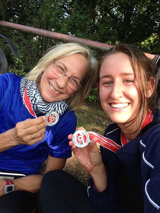 ..Und wollte erst gar nicht teilnehmen! Sie konnte sich nicht vorstellen, dass das Konzept des Laufes für sie persönlich Spaß machen kann: Ein Läufer und ein Radfahrer, die sich auf der Strecke abwechseln. D.h. eine Person läuft solange sie mag und stimmt sich dann mit dem Radfahrer ab, der dann das Laufen übernimmt. Kerstin hatte Sorge, dass ihre Tochter Svenja, die drängelte mitzumachen, gar nicht so langsam Fahrrad fahren kann, wie sie läuft. Es gab diverses Hin- und Herüberlegen bis die Entscheidung fiel mitzumachen. Von den möglichen Distanzen 42, 21 und 10,5 km entschieden wir uns für die kürzeste. Für unseren Teamnamen nahmen wir uns ein Beispiel an dem Kleinen Muck und nannten uns die Königlichen Schnellläufer. Am Veranstaltungstag trafen wir uns bei bestem Wetter auf dem Sportplatz Heidenheimer Straße. Der Verein achtete gewissenhaft auf die Einhaltung der Coronaregeln wie z.B. die Hinterlegung der persönlichen Daten, das Tragen von Masken im Startbereich und das Abstandhalten. Der Veranstalter hatte alles durchdacht: Es wurde zeitlich versetzt in verschiedenen Gruppen gestartet und für die 10,5 km-Sportler ging es als Letzte los. Svenja startete als Läuferin und Kerstin wartete an der Fahrradstartposition. Diese lag ca. 800 m hinter dem Läuferstart, damit es kein Gedrängel im Startbereich gab. Auch die anderen Radfahrer warteten dort gespannt auf ihre Läufer, die Stimmung war locker und fröhlich. Schon war Svenja zu sehen und Kerstin gesellte sich mit dem Fahrrad zu ihr. Wir hatten uns schnell eingespielt und wechselten uns ungefähr alle zwei Kilometer ab. Entgegen Kerstins anfänglichen Befürchtungen fiel Svenja nicht vom Rad während sie lief. Stattdessen hatten wir Zeit und Kraft zu plaudern – jedenfalls der Radfahrer hatte dies. Wir genossen den wunderschönen Wald, die Sonnenstrahlen, die durch die Baumkronen fielen, die gute Stimmung unter den Teilnehmern und den Lauf überhaupt. Auf der Strecke sorgten fleißige Helfer dafür, dass wir nicht vom Weg abkamen. Unsere Laufstrecke war schneller bewältigt als gedacht. Wir tauschten noch einmal ca. 1 km vor dem Ziel, damit Svenja noch einen Endspurt einlegen konnte. Unser Ergebnis wurde uns gleich ausgedruckt. Und Medaillen gab’s auch, was für ein toller Service!