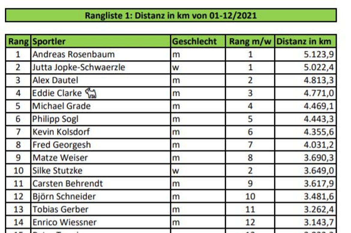 Wer ist die meisten Kilometer gelaufen? Wer hat am häufigsten trainiert und wer hat die höchsten Berge (Höhenmeter) erklommen?